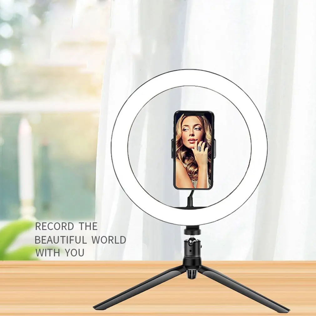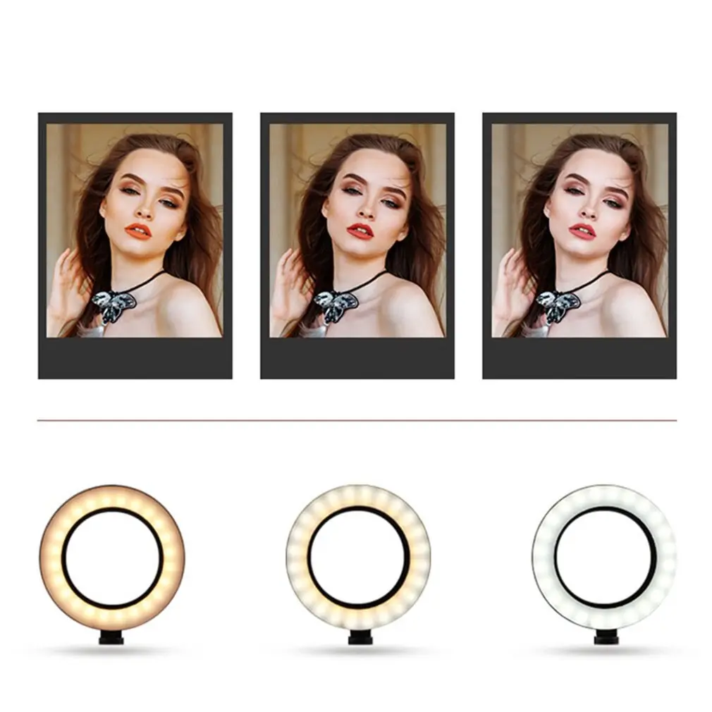 Cibenid Broadcast Live Photography Fill Light 6.3inch LED Camera Phone Flash Dimmable Light On-Camera Video Lights-Option Two Without Desktop Stand