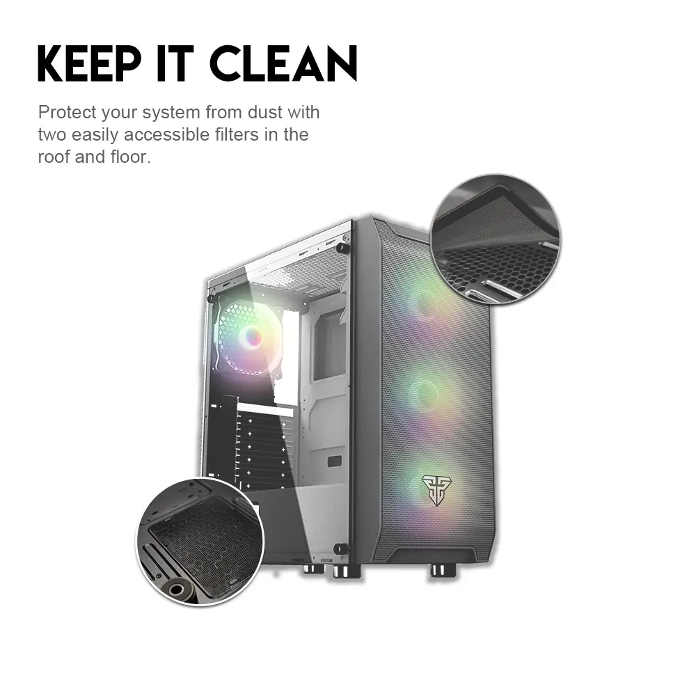 Support 6 RGB fans (3 front, 1 rear, 2 top) – 4 are included